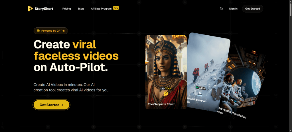 StoryShort.ai is another tool that allows you to create faceless videos with the potential to go viral. Like Autoshorts or QuickVid, you can create a video almost entirely with AI and only need minimal input.