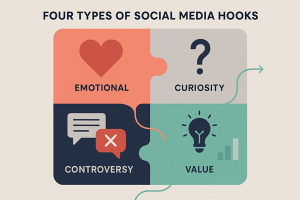 Not all hooks are created equal. Different types work better for different content, audiences, and platforms. Let’s break down the four primary categories.