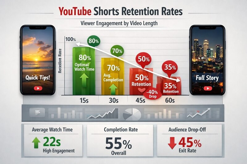 - Shorter Shorts (15-30 seconds) typically have higher retention rates but less time for storytelling