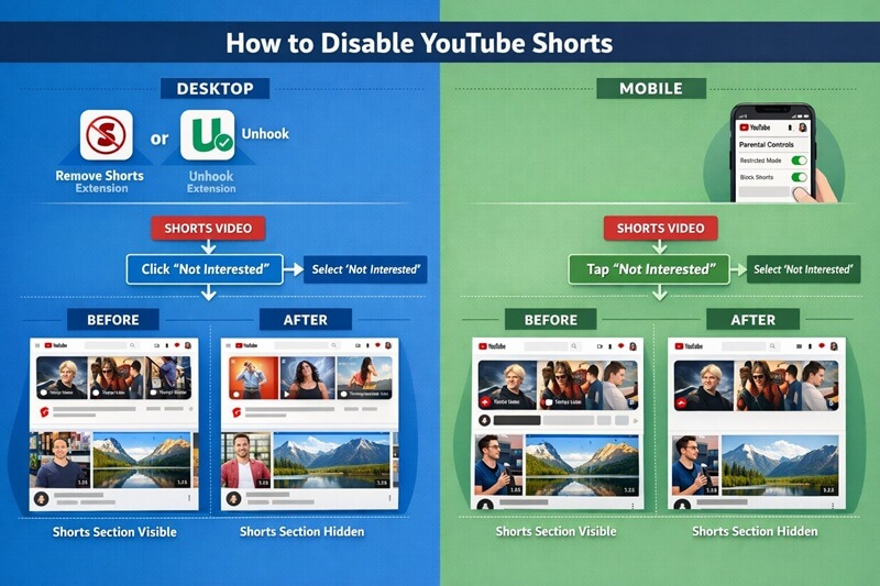 - Complete blocking isn’t possible: YouTube doesn’t offer an official toggle to permanently disable Shorts, but reduction methods exist
