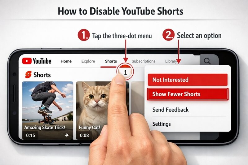 Mobile is where most users encounter Shorts, and fortunately, it’s also where you have the most direct control options. These methods work on iPhone, Android, Samsung, and any device running the official YouTube app.