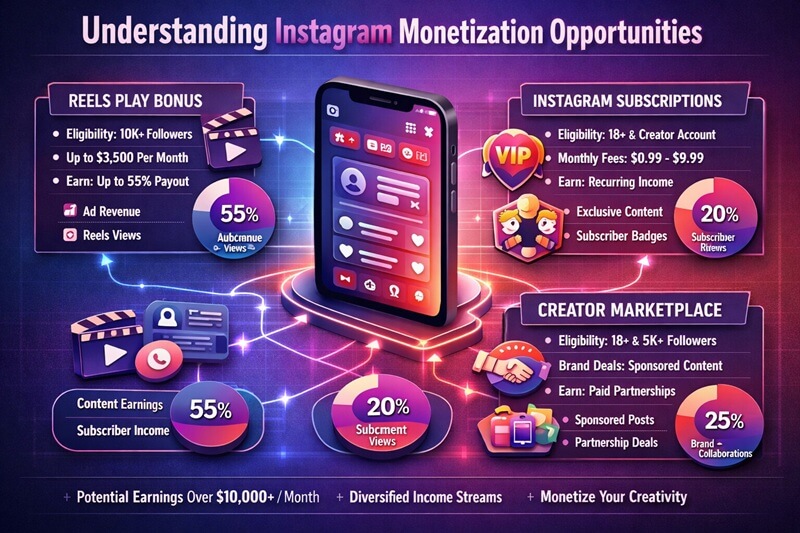 Learning how to get monetized on Instagram requires understanding both Instagram’s official programs and alternative monetization methods.