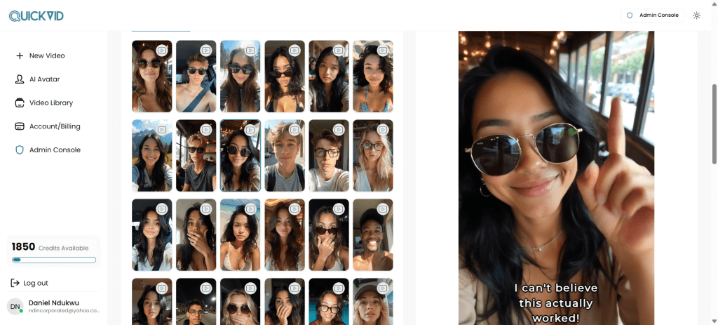 When you’ve created custom AI avatars in QuickVid, you create the video, then you create the image.