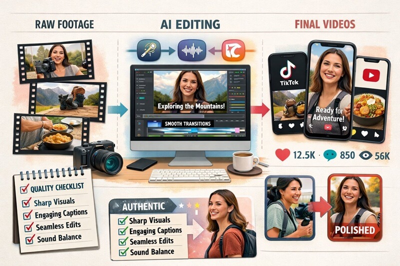 Test different editing styles and let performance data guide you. Create some videos with minimal editing and others with more production value. See which ones your audience engages with more, then adjust your approach based on results rather than assumptions.