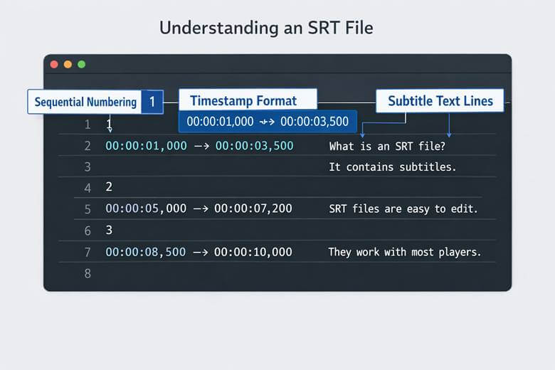 Here’s what makes SRT files special: they’re plain text files. No fancy formatting. No embedded audio or video. No colors, fonts, or bold text. Just pure, simple text with timestamps.